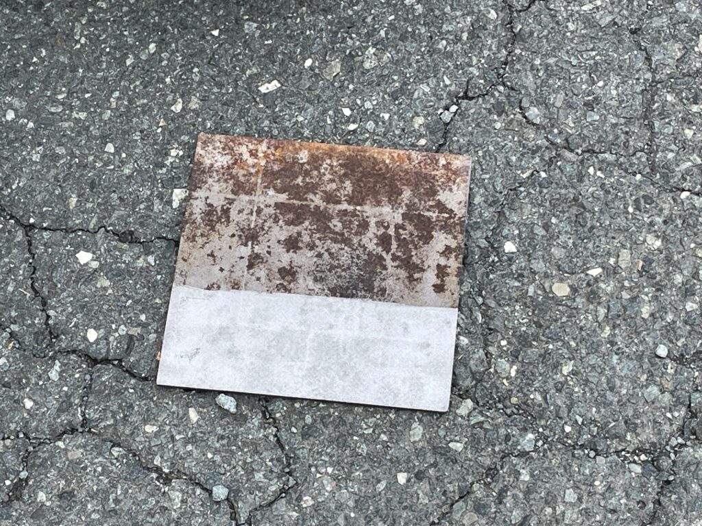 錆びた鉄板を洗浄しているところです。